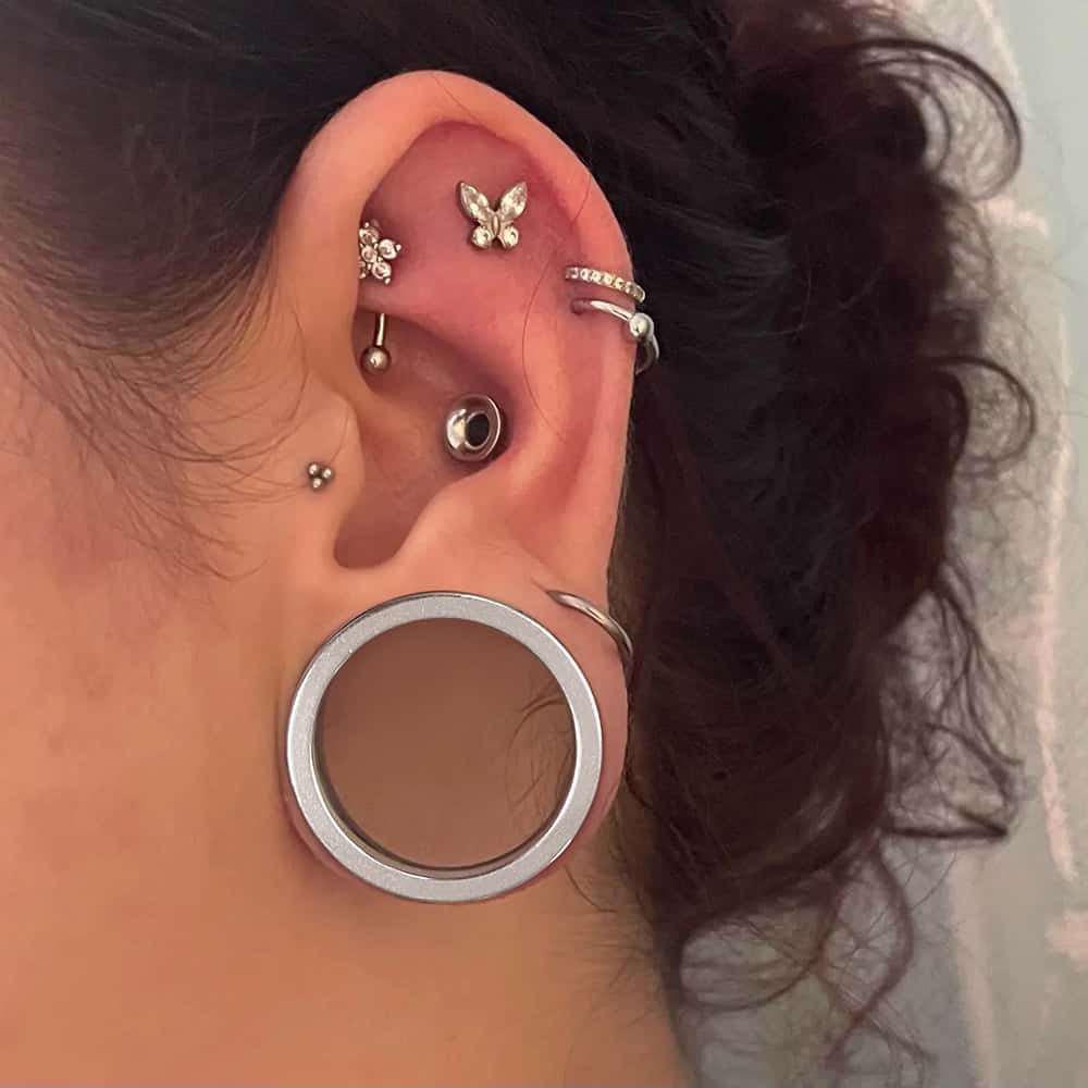 • Material: 316 Surgical Stainless Steel; Flares: Single flare with O-ring; Worn In: Lobe, Ear lobe. Colors offered: silver.