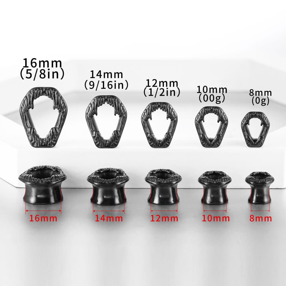 | Size | 08mm=0g, 10mm=00g, 12mm=1/2", 14mm=9/16", 16mm=5/8"  |