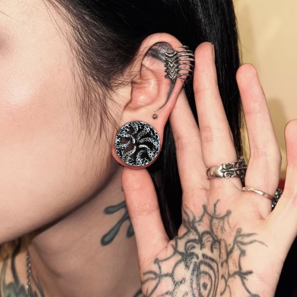 Add a dark oceanic twist to your Halloween look with these Octopus Tentacle Ear Plugs. Crafted from durable stainless steel in deep black, the detailed tentacle design evokes a gothic, mysterious energy — perfect for spooky season outfits or anyone who loves bold statement piercings. Comfortable for daily wear and made to impress during Halloween nights.